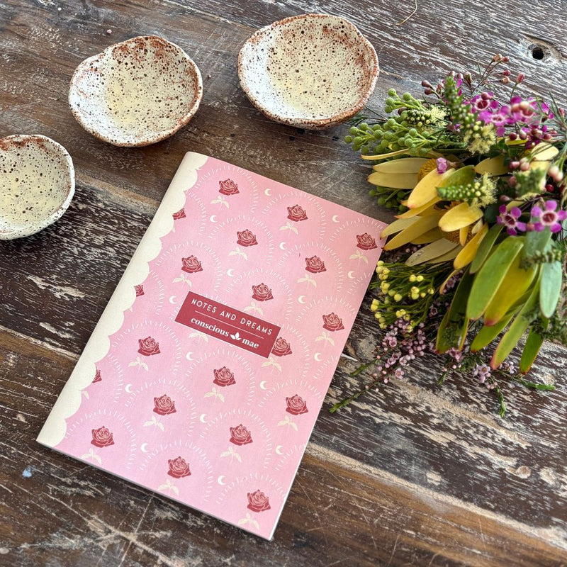 Inspired by the gentle rhythm of slow living and the timeless beauty of vintage textures, this A5 soft cover notebook features a delicate celestial and rose-themed design in soft, vintage-inspired hues of dusty rose and warm pinks. With its lightly textured cover and romantic aesthetic, it’s the perfect balance of classic charm and modern simplicity. Ideal for journaling, sketching, or everyday writing.